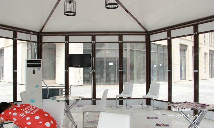 可作為臨時或長期建筑,優雅的多邊形空間,無需額外的內飾。 可靈活地和人字頂篷房結合,組成更獨特的造型。耐用,抗風,并獲得相關證書,可選用全系列配件。