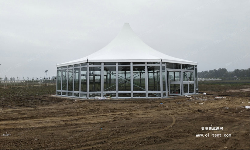 它既有普通篷房在長度方面的靈活性, 又有尖頂和多邊形的特異性,突破了傳統帳篷的單一人字形造型,非常適合各種大型活動,體育賽事, 商業活動,展覽,慶祝等。大跨度的篷房加上尖頂和多邊形的造型,效果驚艷!還可以人字頂和尖頂篷房結合形狀特殊的組合篷房。多邊形篷房特點有:搭建工期短,易于組裝和拆卸。