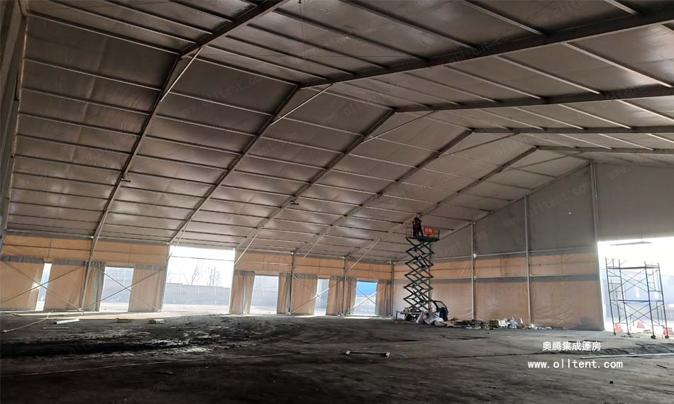 倉儲篷房為臨時性建筑,對環境要求低:它不需要昂貴的混凝土基礎,可以適應多種環境——草地、水泥地、普通地面等自由選擇;幾乎無需審批報建。大幅節約時間成本,快速實現倉儲擴建;倉庫篷房保溫性能好:采用雙層絕緣材料,有效保溫隔熱,更可當做移動冷藏倉庫使用