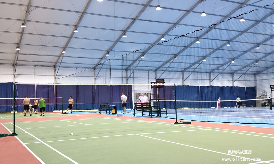 奧騰篷房可以打造各式各樣的籃球場(chǎng)館篷房,跨度從3米至60米,高度從3米到8米,在籃球場(chǎng)館篷房設(shè)計(jì)外觀上更是多樣化:球形、人字形、弧形等。完全滿足網(wǎng)球、足球、羽毛球、游泳等體育活動(dòng)對(duì)場(chǎng)館的需求。